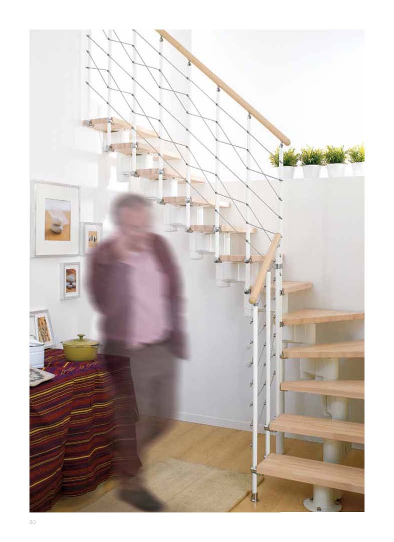 Die Höhe, die Auftritte und die Drehrichtung können während der Montage bestimmt werden. Beste Anpassungsfähigkeit an den Treppenraum, entweder im geraden Verlauf oder mit ein oder zwei Ecken.