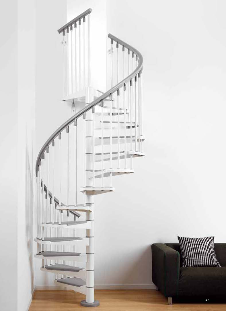 Die Treppe zeichnet sich durch ein universelles Podest aus, das die Montage in Öffnungen jeder Form und Größe ermöglicht. Die Drehrichtung im oder gegen den Uhrzeigersinn wird im Zuge der Montage bestimmt. Es sind die Durchmesser 120, 140 und 160 cm erhältlich.