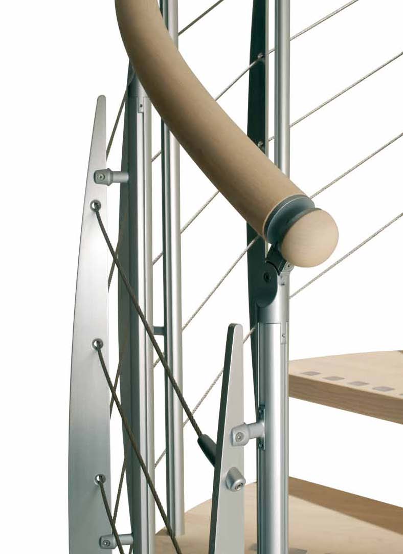 Das Geländer Trend ist in der Ausführung Silver aus eloxiertem Aluminium nur für Spindeltreppen mit rundem Grundriss erhältlich.
