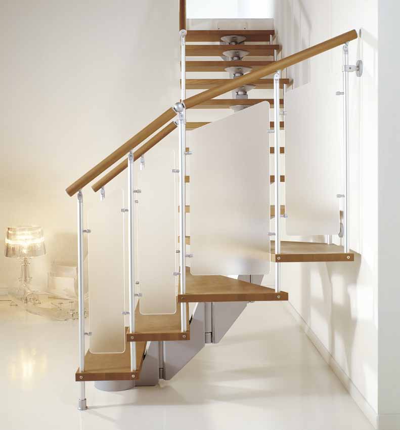 Material: Massives Eschenholz, Aluminium und Methacrylat verschmelzen zu einer komfortablen, widerstandsfähigen Treppe mit faszinierendem Design.