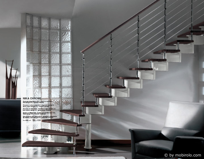 Die Treppe hat als Standard eine Wendung mit drei Stufen. Optional mit vier Stufen oder Podest in der Wendung erhältlich.