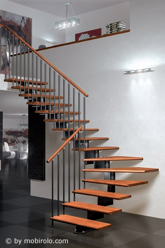 Die Treppe hat als Standard eine Wendung mit drei Stufen. Optional mit vier Stufen oder Podest in der Wendung erhältlich.
