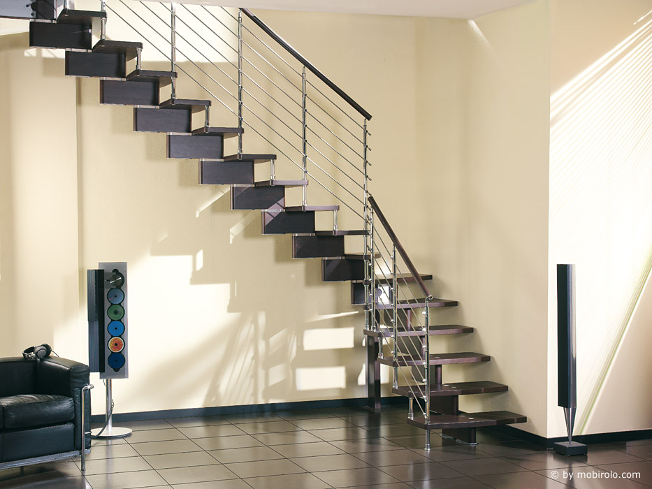 Die Treppe hat als Standard eine Wendung mit drei Stufen. Optional ist ein Podest in der Wendung erhältlich.