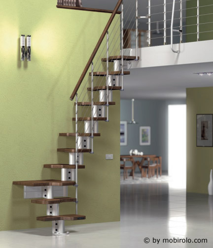 Die platzsparende Treppe Dixi mit Ihren wechselseitig begehbaren Schmetterlingsstufen ist ideal für kleinste Räume.
